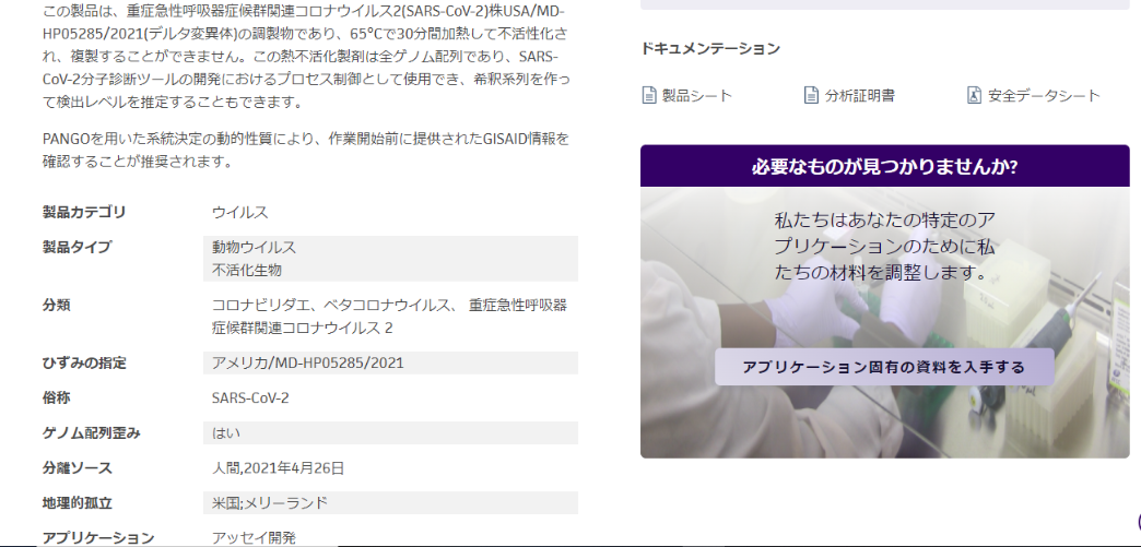 熱不活性化SARS-CoV-2、デルタバリアント|ATCC
