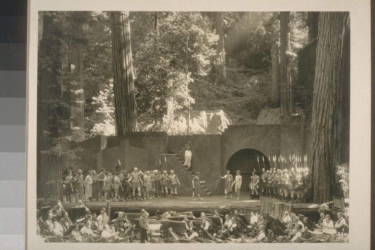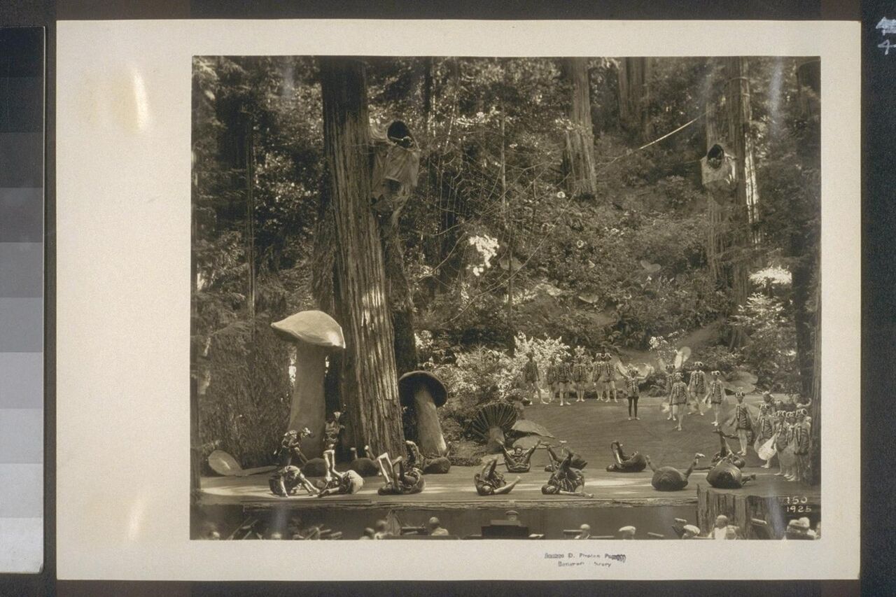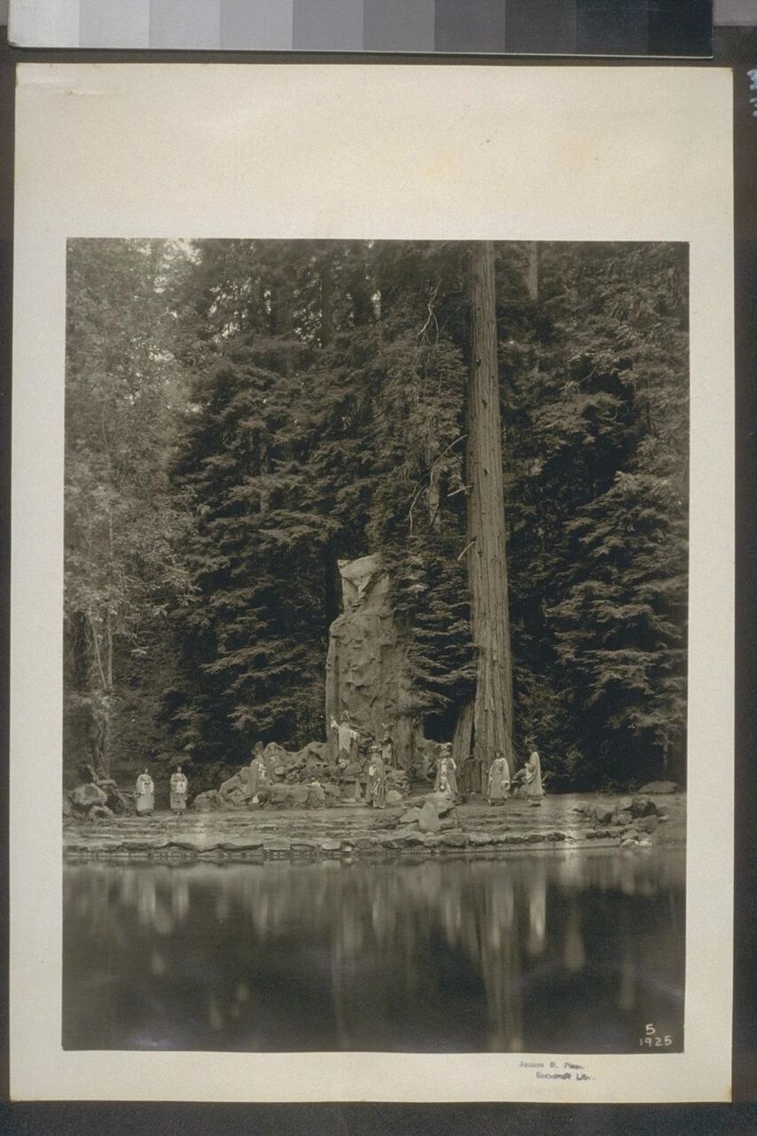 アメリカのボヘミアングローヴでの秘密の紳士達の集まり、日の丸もあり:1904年