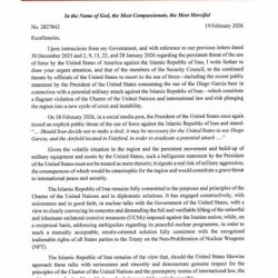 イラン、国連に通告:「……当該地域における敵対勢力の全ての基地、施設、資産は正当な標的となる……」2026年2月19日:https://halturnerradioshow.com/index.php/component/content/article/iran-notifies-un-all-bases-facilities-and-assets-of-the-hostile-force-in-th ...