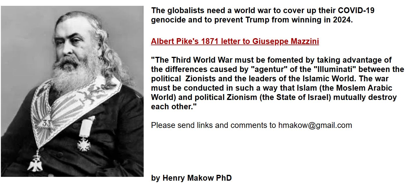 最悪のシナリオは、イスラエルが過剰反応してイスラム世界の怒りを買い、イスラム世界が介入してアルバート・パイクの予言を実現させてしまうことです。