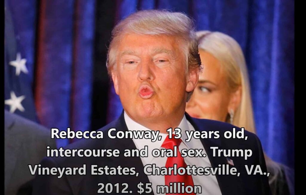 (4) レベッカ・コンウェイ、13歳、性交およびオーラルセックス。2012年、バージニア州シャーロッツビル、トランプ・ヴィンヤード・エステーツ、500万ドルの和解金。