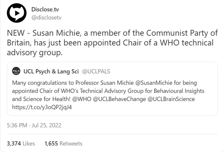 ↑イギリス共産党員のスーザン・ミッチーが、WHO技術諮問グループの議長に任命されました。