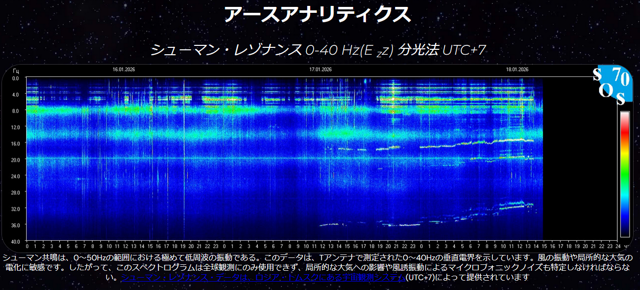 2026年1月17日、ロシア・トムスクの宇宙観測システムにより、シューマン共鳴の品質係数(共鳴増幅を示す指標)において比類のない急上昇が観測された。本ライブストリームでは、過去数年間に観測されたシューマン共鳴の異常信号——特に高マグニチュード地震発生直前の現象——を検証し、今回の急激な上昇が「ビッグワン」(近未来に発生する可能性のある超巨大地震)とどう関連するかを探ります。地質物理学者ステファン・バーンズによる解説。